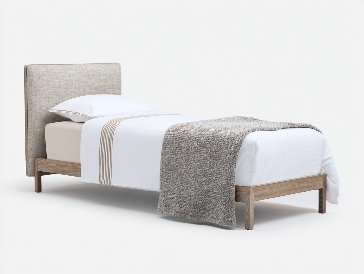 Łóżka pojedyncze - tkanina-drewno - 205x100x103 cm - beżowy-drewno - nowoczesny