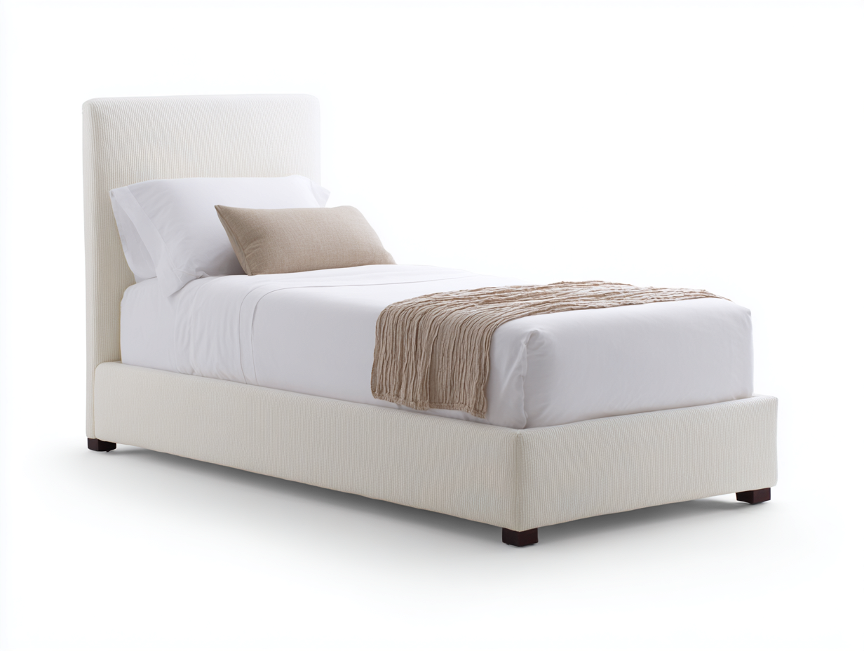 Nowoczesne łóżko pojedyncze o prostym i eleganckim designie, idealne do sypialni o minimalistycznym charakterze. Jasna kolorystyka wprowadza do wnętrza lekkość i harmonię.